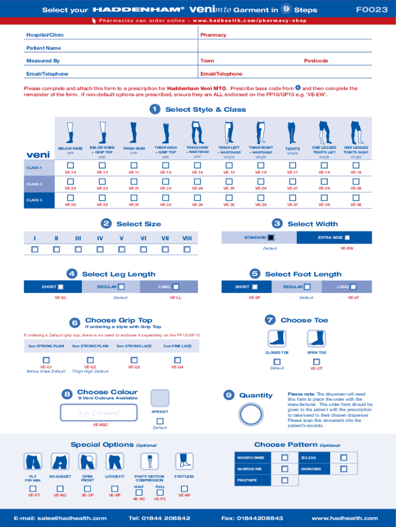 MTO Garment in 9 StepsSelect yourF0023P h an r m a c i e s c an n o rd e r o n l i n e w w w. h a d h e an l t h. C o m / p h an r m a c y s h op Hospital/ClinicPharmacyPatient Name Measured ByTownPostcodeEmail/TelephoneEmail/TelephonePlease