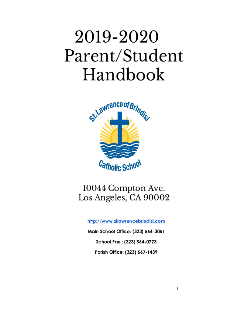 20192020 Parent/Student Handbook 10044 Compton Ave. Los Angeles, CA 90002 http://www.stlawrencebrindisi.com Main School Office: (323) 5643051 School Fax : (323) 5640773 Parish Office: (323) 5671439