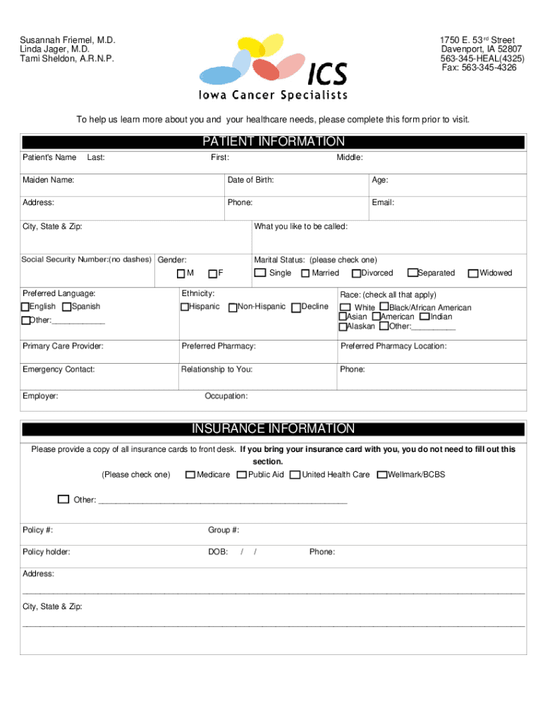 New patient registration forms can be filled out by providing accurate and complete information as requested on the form.
