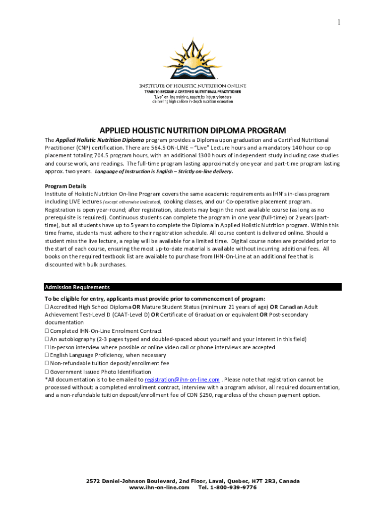 1APPLIED HOLISTIC NUTRITION DIPLOMA PROGRAM The Applied Holistic Nutrition Diploma program provides a Diploma upon graduation and a Certified Nutritional Practitioner (CNP) certification. There are