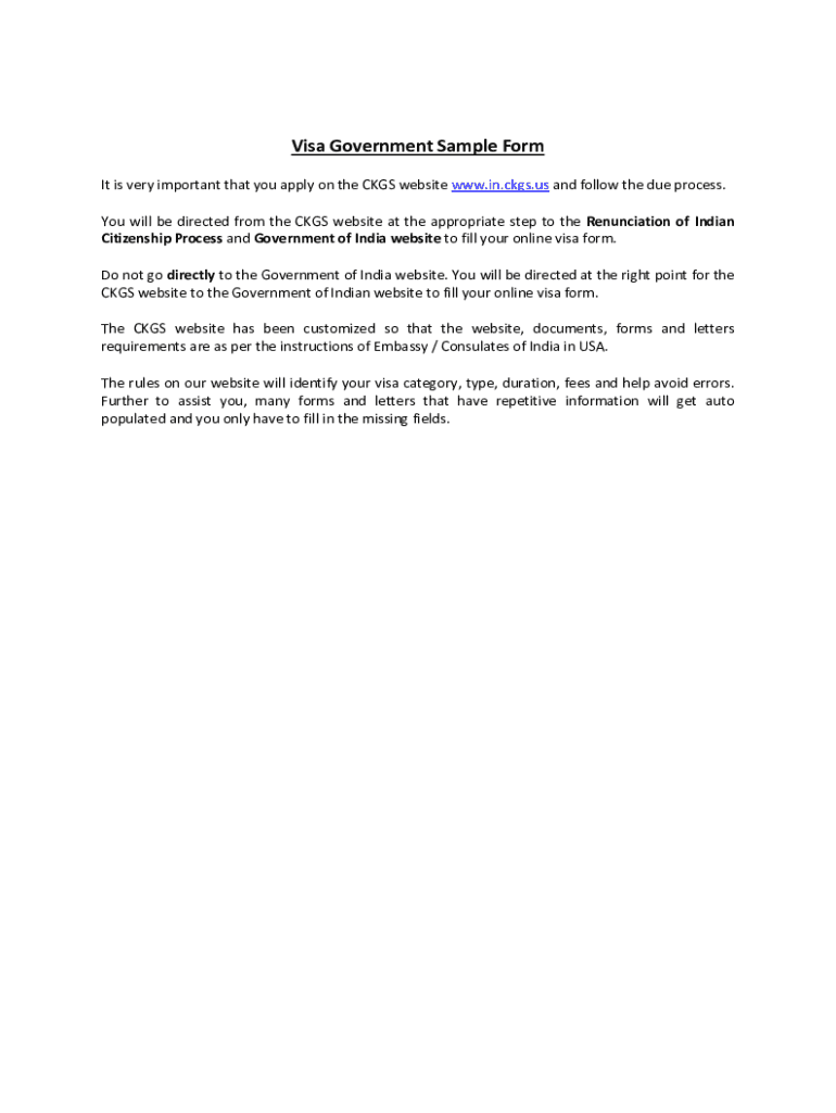 Visa Government Sample Form It is very important that you apply on the CGS website www.in.ckgs.us and follow the due process. You will be directed from the CGS website at the appropriate step to the