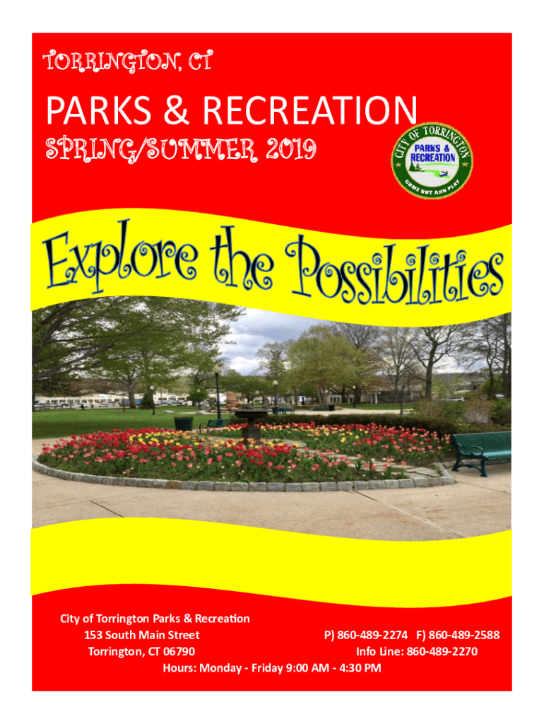 TORRINGTON, PARKS & RECREATION SPRING/SUMMER 2019City of Torrington Parks & Recreation 153 South Main Street P) 8604892274 F) 8604892588 Torrington, CT 06790 Info Line: 8604892270 Hours: Monday Friday