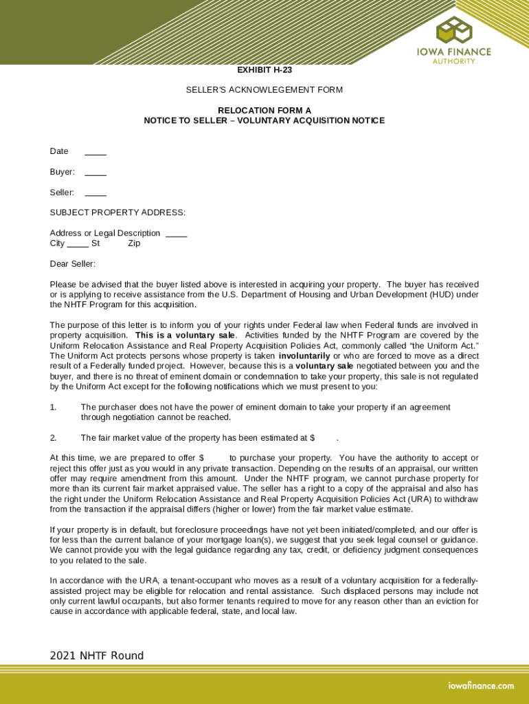 What is SELLER'S ACKNOWLEGEMENT Doc TemplatepdfFiller Form?