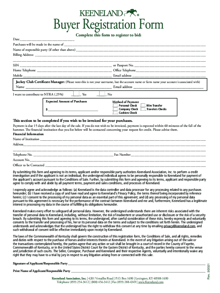 Get the free Buyer Registration Form 7-2018 - keeneland.com
