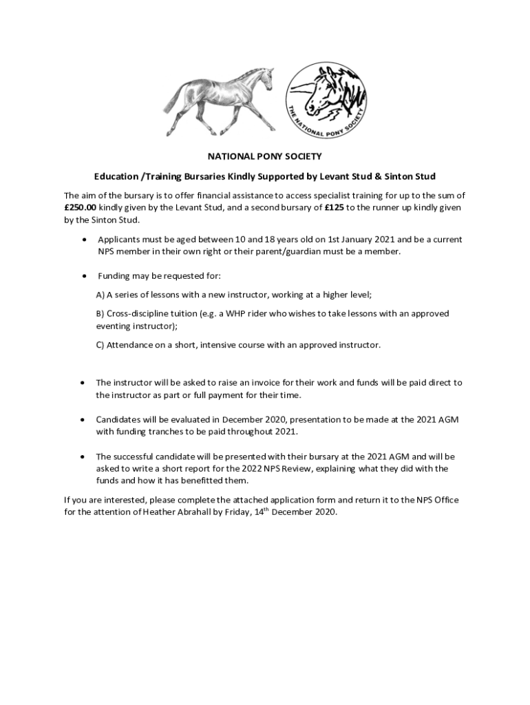 Get the free NATIONAL PONY SOCIETY Education /Training Bursaries Kindly ...