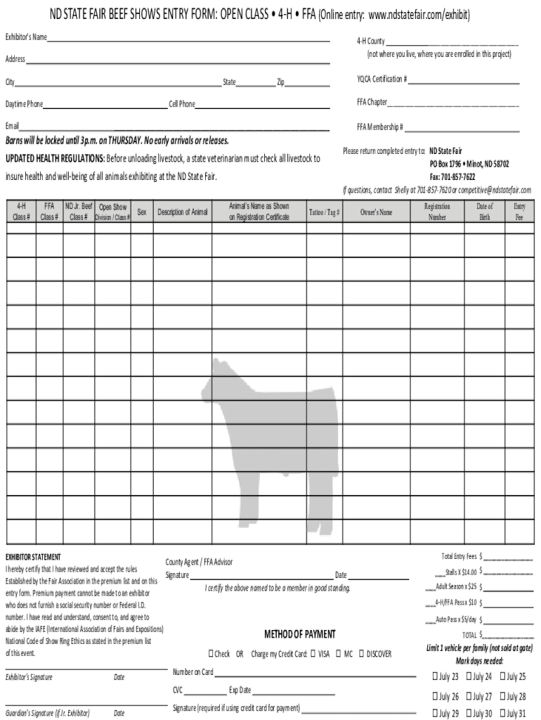 Get the free ND STATE FAIR BEEF SHOWS ENTRY FORM: OPEN CLASS 4-H ...