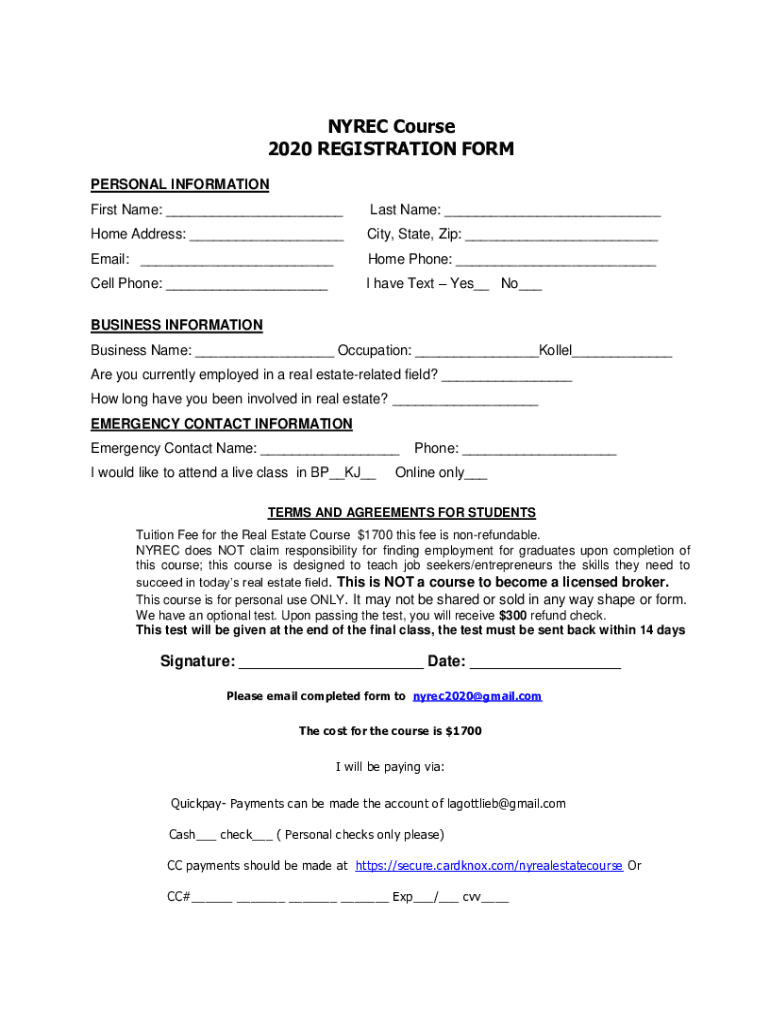 To fill out NYREC Course 2020 registration, follow these steps:
