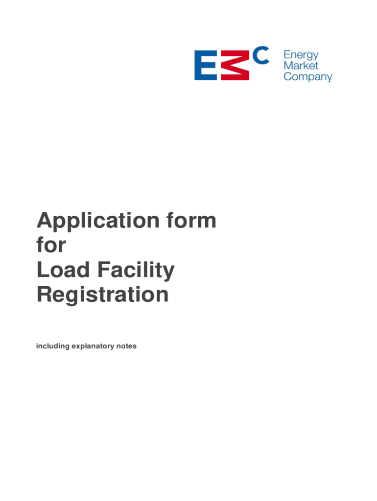 Application form for Load Facility Registration including explanatory notesIMPORTANT: Please read this carefully before completing this form. Italicized words and expressions used herein (but not