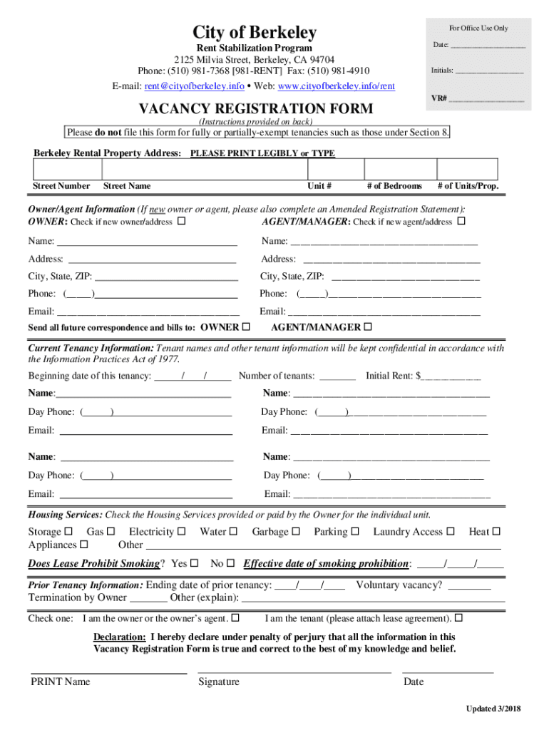 City of Berkeley Office Use Inherent Stabilization Program 2125 Silvia Street, Berkeley, CA 94704 Phone: (510) 9817368 981RENT Fax: (510) 9814910 Email: rent cityofberkeley.info Web: www.cityofberkeley.info/rentDate: