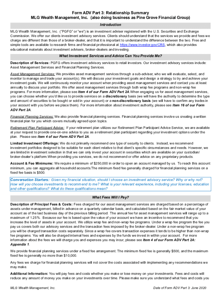 Get the free Form ADV Part 3: Relationship Summary MLG Wealth Management ...