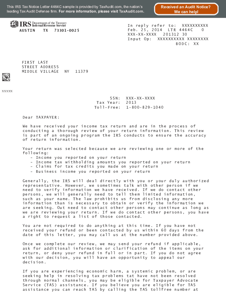 Referenceirs audit letter 4464c may be needed by individuals or businesses who have been selected for an audit or review by the Internal Revenue Service (IRS).