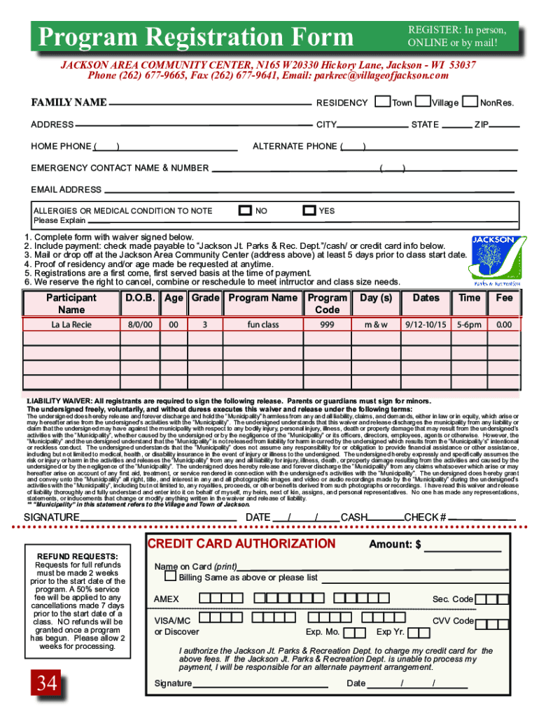 Get the free Program Registration Form - Jackson Park & Recreation
