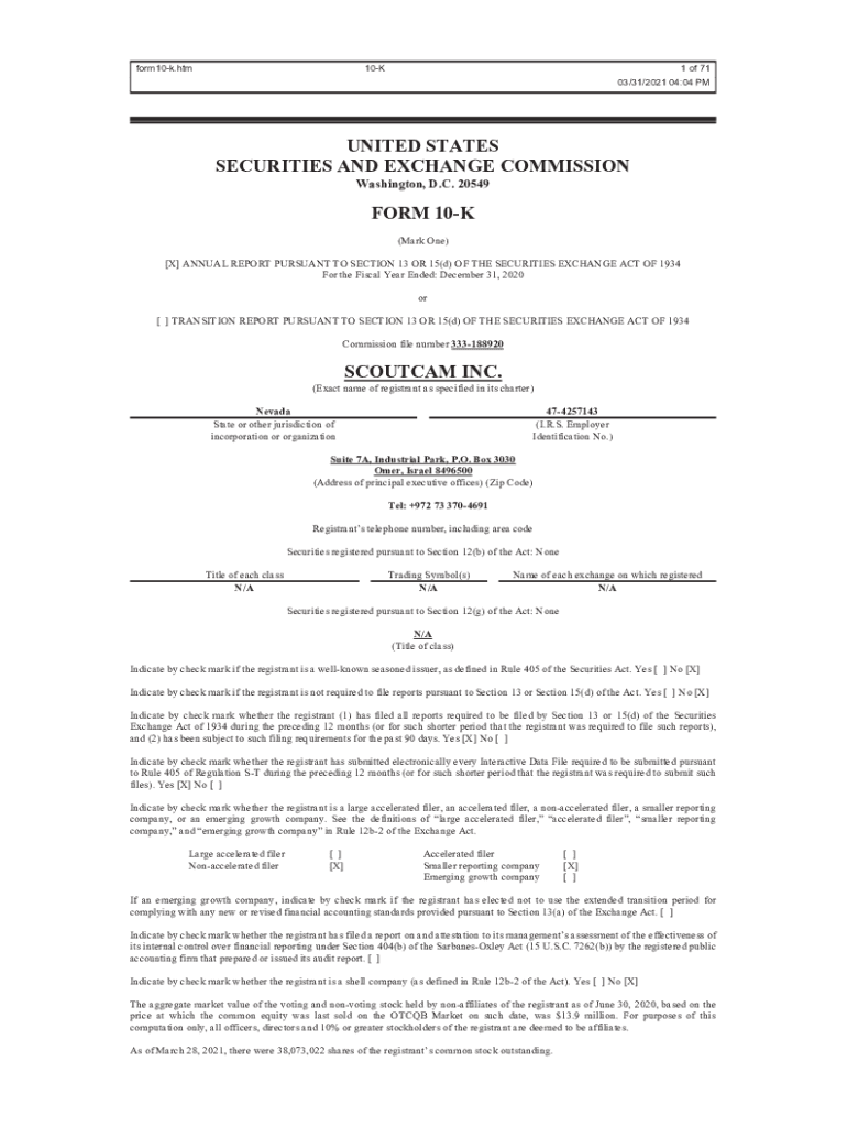 Get the free UNITED STATES SECURITIES AND EXCHANGE ... - scoutcam.com