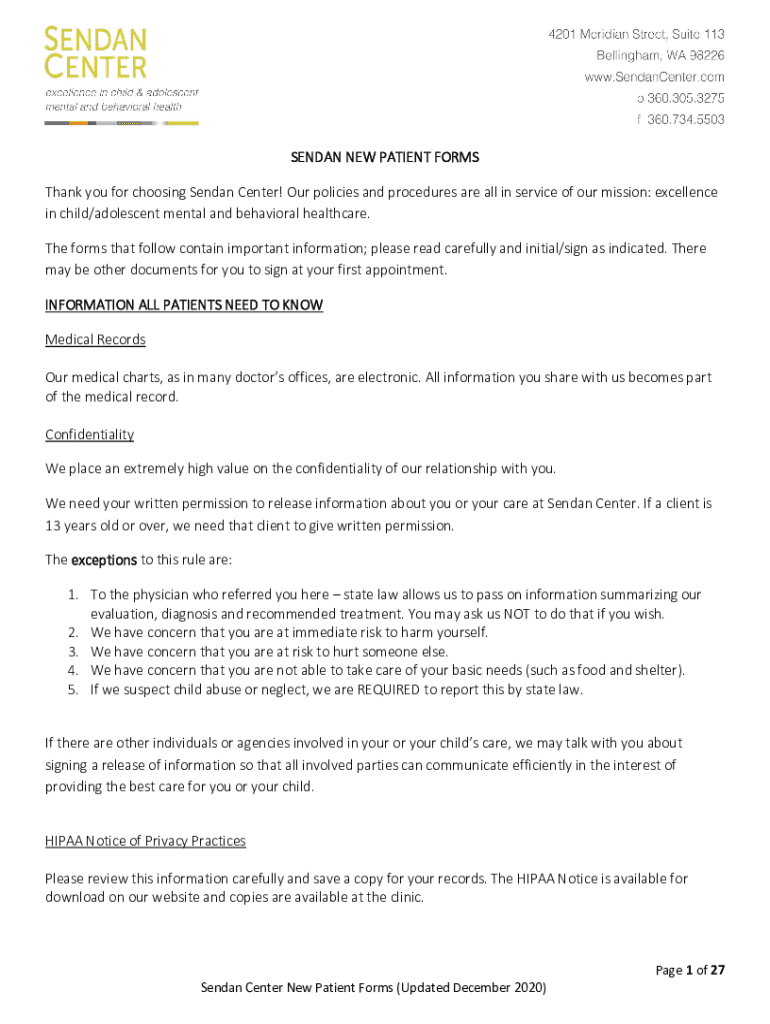 Get the free Learning Services Intake New Patient Forms - Sendan Center
