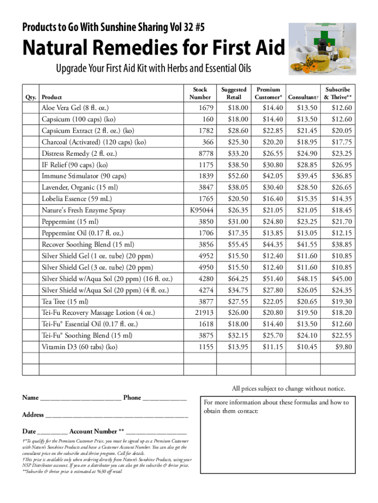 Get the free Natural Remedies for First Aid - Order Form / Flyer. First Aid