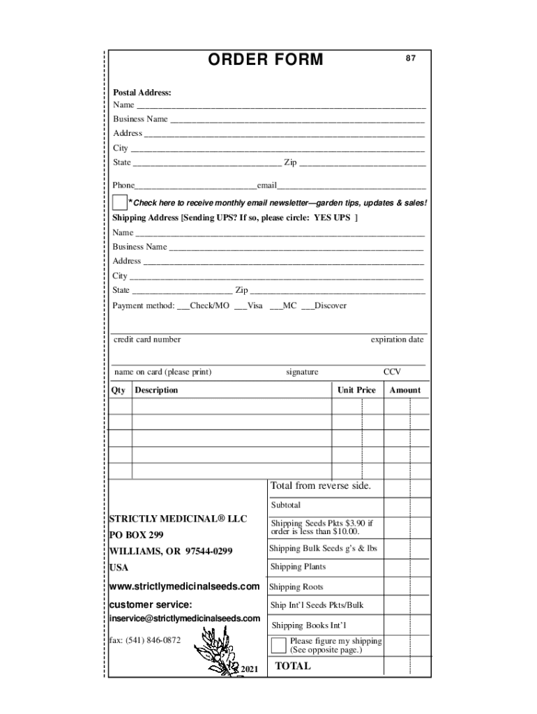 ORDER FORM87Postal Address: Name Business Name Address City State Zip Phone email *Check here to receive monthly email newsletter garden tips, updates & sales! Shipping Address Sending UPS? If so,