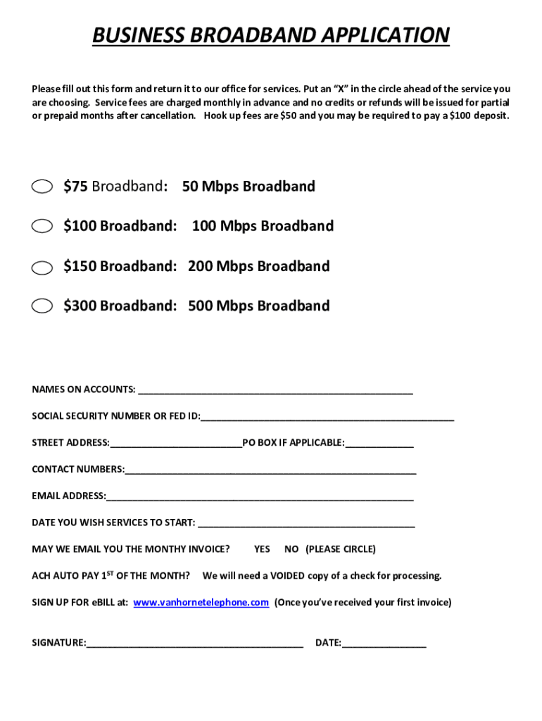 Get the free Business Broadband APPLICATION FORM