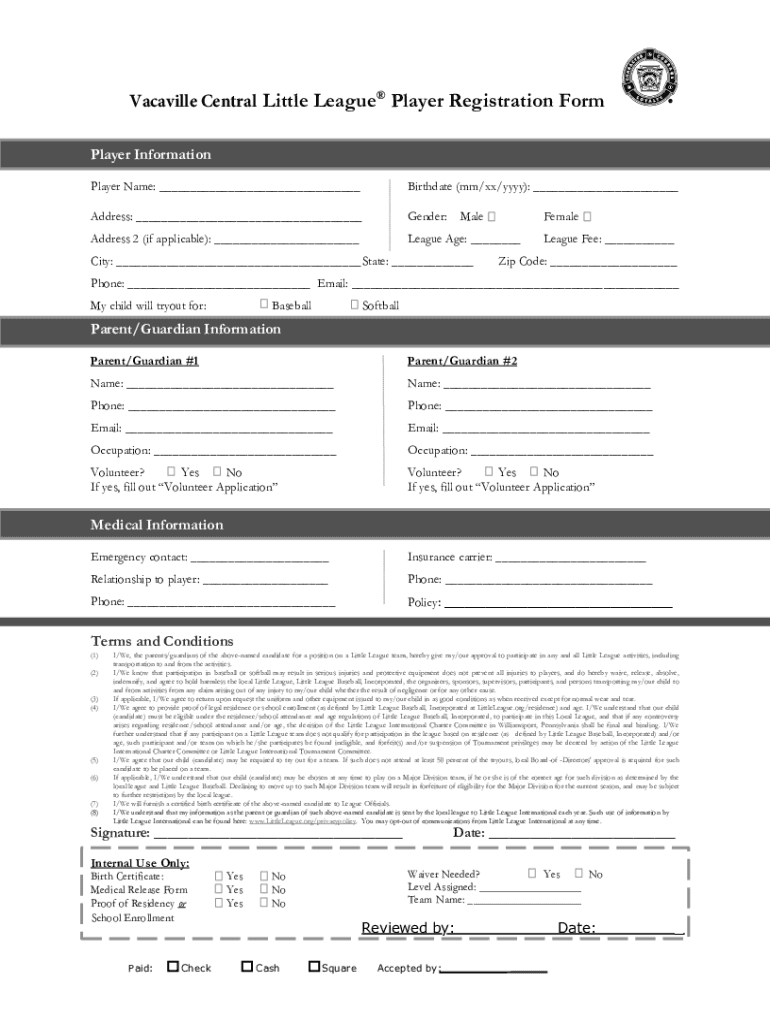 Edit your little league player registration form online