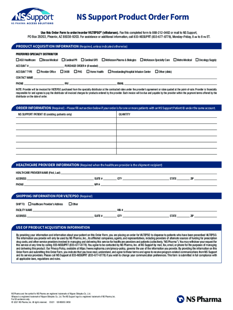 Get the free NS Support Product Order Form - viltepso.com