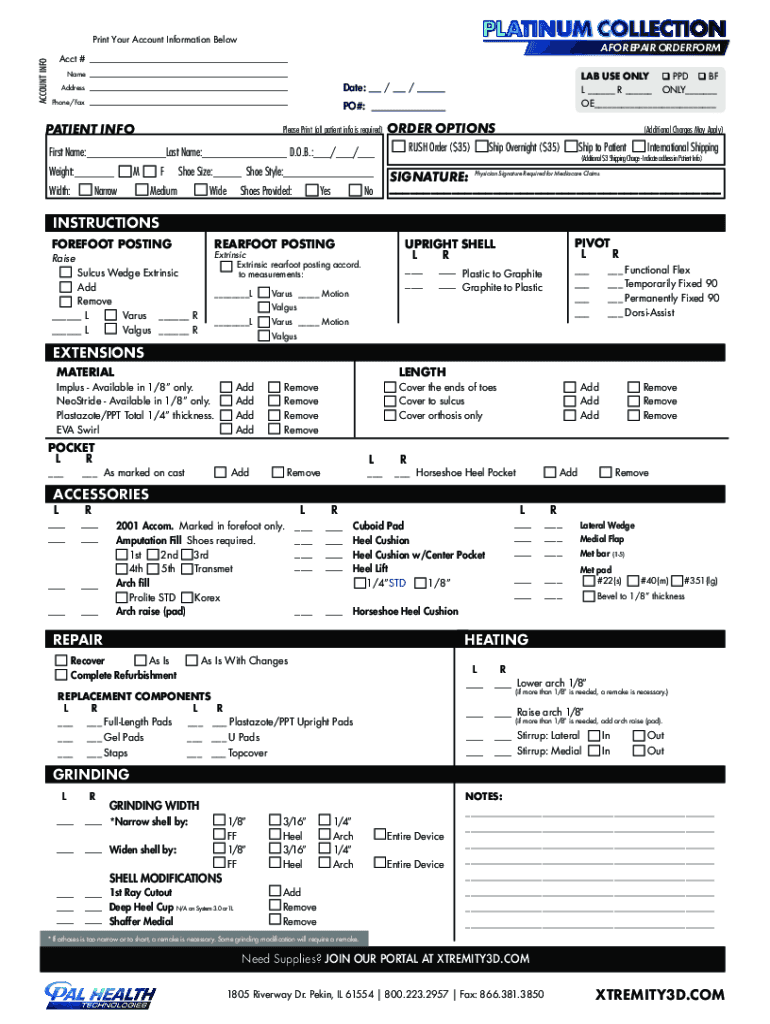 Get the free PATIENT INFO ORDER OPTIONS PLEASE PRINT (All ... - xtremity3d.com