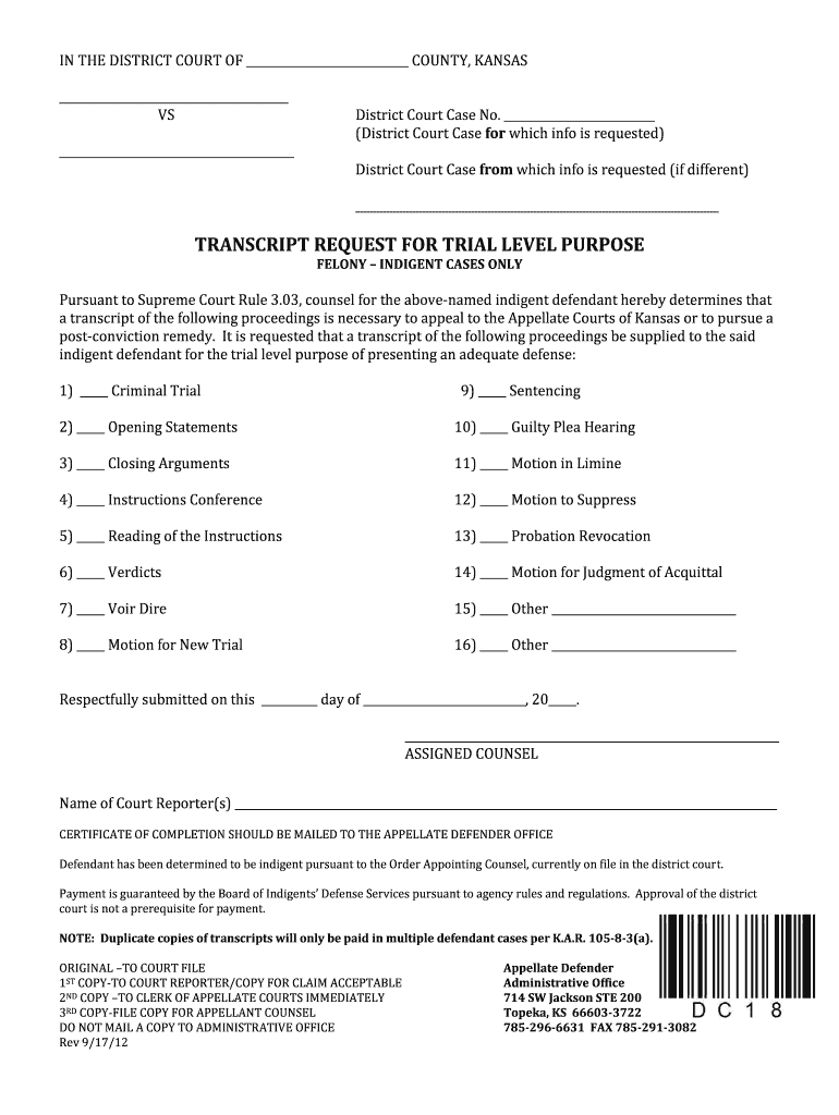 Get the free BTRANSCRIPT REQUESTb FOR TRIAL LEVEL PURPOSE - dc18