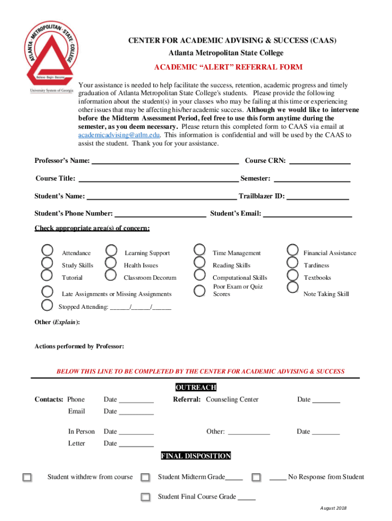 Get the free Academic Alert Form Fall 2016 - Atlanta Metropolitan State ...