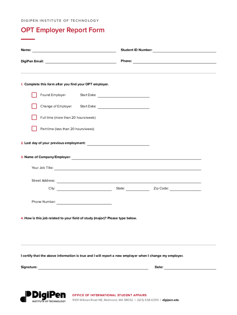 How to fill out digipen opt employer report