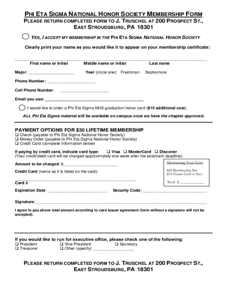 Get the free PHI ETA SIGMA NATIONAL HONOR SOCIETY MEMBERSHIP FORM ...