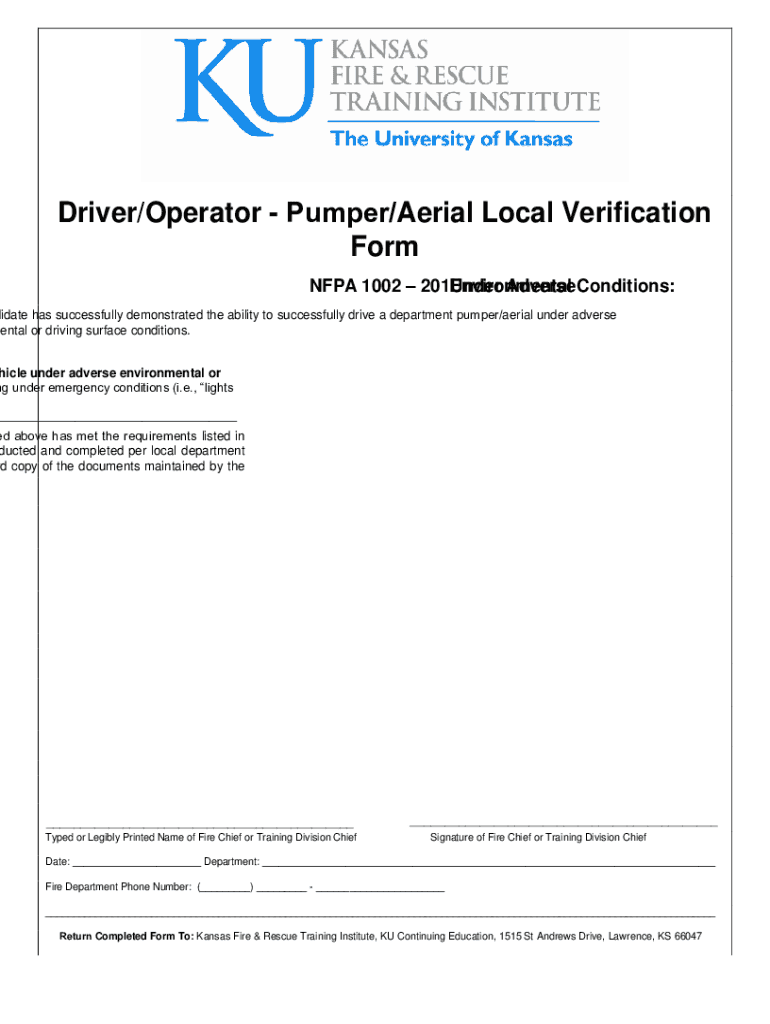 Get the free Driver/Operator - Pumper/Aerial Local Verification Form