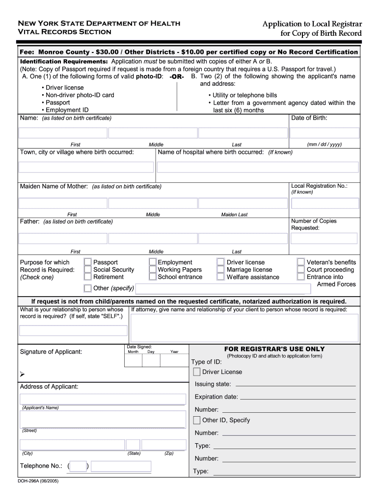 Name of hospital where birth occurred: (If known). Maiden Name of Mother: (as listed on birth certificate) ... A. One (1) of the following forms of valid photo-ID: B. Utility or telephone ... Letter