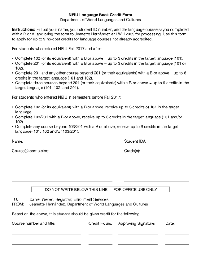 Get the free NEIU Language Back Credit Form.docx