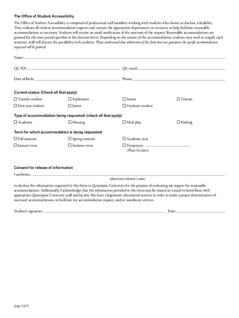 Get the free Accommodation Request Form for Students with Disabilities, Quinnipiac University
