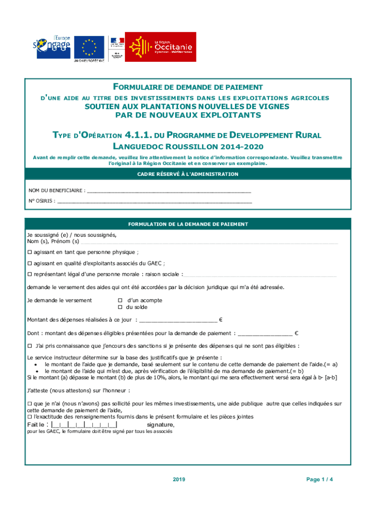 FORMULA IRE DE DEMAND DE PAVEMENT D 'ONE AIDE AU TITLE DES INVESTISSEMENTS DAYS LES EXPLOITATION AGRICOLESSOUTIEN AUX PLANTATIONS NOVELLAS DE VINES PAR DE BORDEAUX EXPLOITANTSTYPE D 'OPERATION 4.1.1.