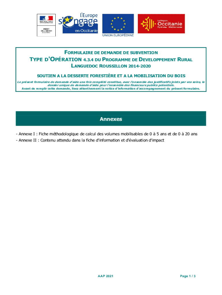 FORMULA IRE DE DEMAND DE SUBVENTION TYPE D\'OPERATION 4.3.4 DU Program DE DEVELOPMENT RURAL LANGUID BOUILLON 20142020 SOUTHERN À la DESSERT FOREST IRE ET À la Mobilization DU BOYS Le present formula