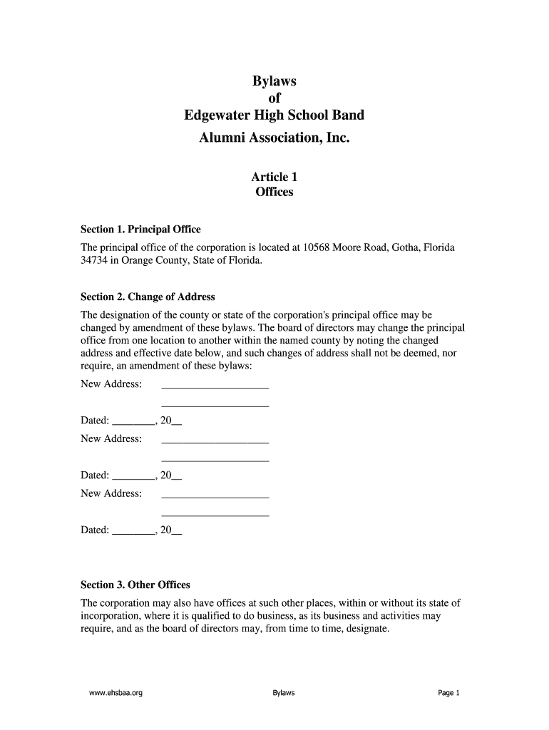 Get the free Bylaws of Edgewater High School Band Alumni Association Inc - ehsbaa