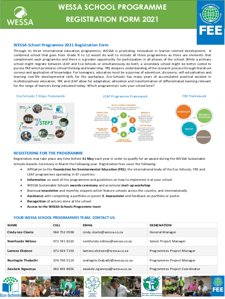 TESSA SCHOOL Program REGISTRATION FORM 2021WESSA School Program 2021 Registration Form Through its three international education programs, TESSA is promoting innovation in learnercentred development.
