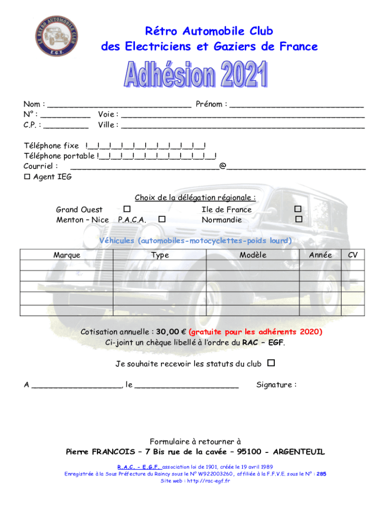 Retro Automobile Club DES Electrician set Glaziers de FranceNom : Prom : N : Voice : C.P. : Villa : Tl phone fine ! ! ! ! ! ! ! ! ! ! ! Tl phone portable ! ! ! ! ! ! ! ! ! ! ! Courier : Agent IEG