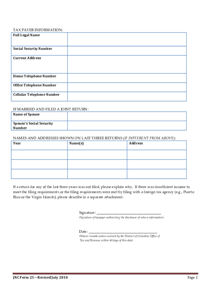 DC TAX CHECK WAIVER I am signing this waiver to permit the District of Columbia Office of Tax and Revenue to release information about me which would otherwise be confidential. This information will