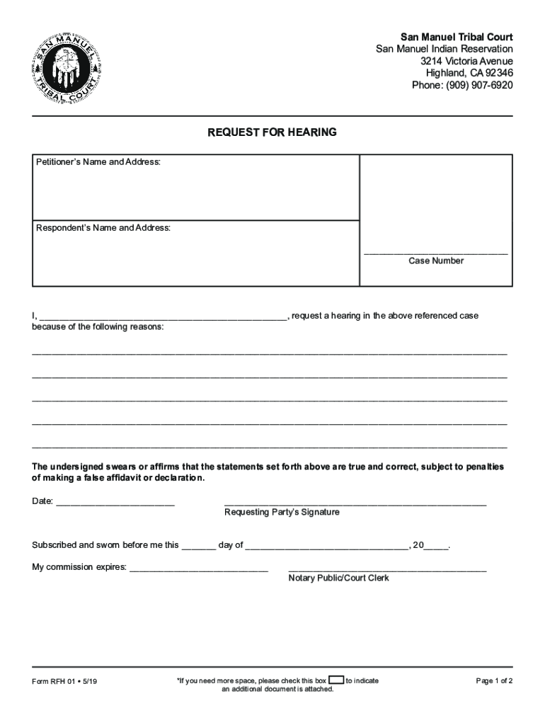 Get the free REQUEST FOR HEARING - San Manuel Band of Mission Indians