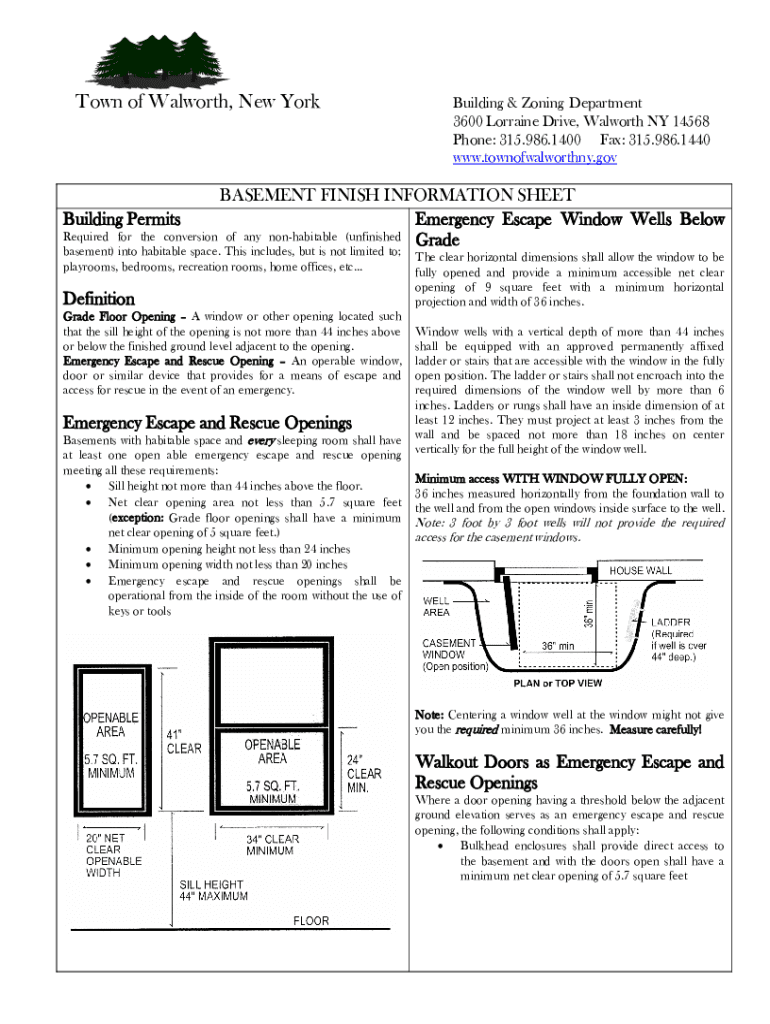 Town of Tamworth, New Rebuilding & Zoning Department 3600 Lorraine Drive, Tamworth NY 14568 Phone: 315.986.1400 Fax: 315.986.1440 www.townofwalworthny.govBASEMENT FINISH INFORMATION SHEET Building