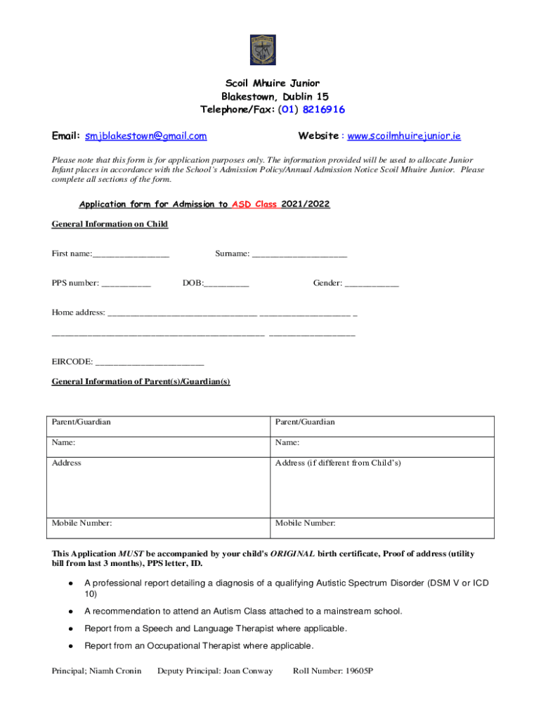 Scoil Mhuire Junior Blakestown is not the form you're looking for?Search for another form here.