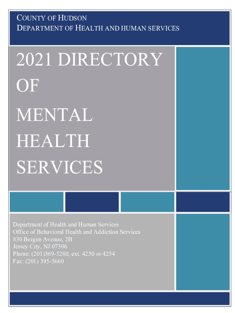 COUNTY OF HUDSON T Y P ET AND HE CO M P A N Y SERVICES ADDRESS DEPARTMENT OF HEALTH HUMAN2021 DIRECTORY OF MENTAL HEALTH SERVICES Department of Health and Human Services Office of Behavioral Health
