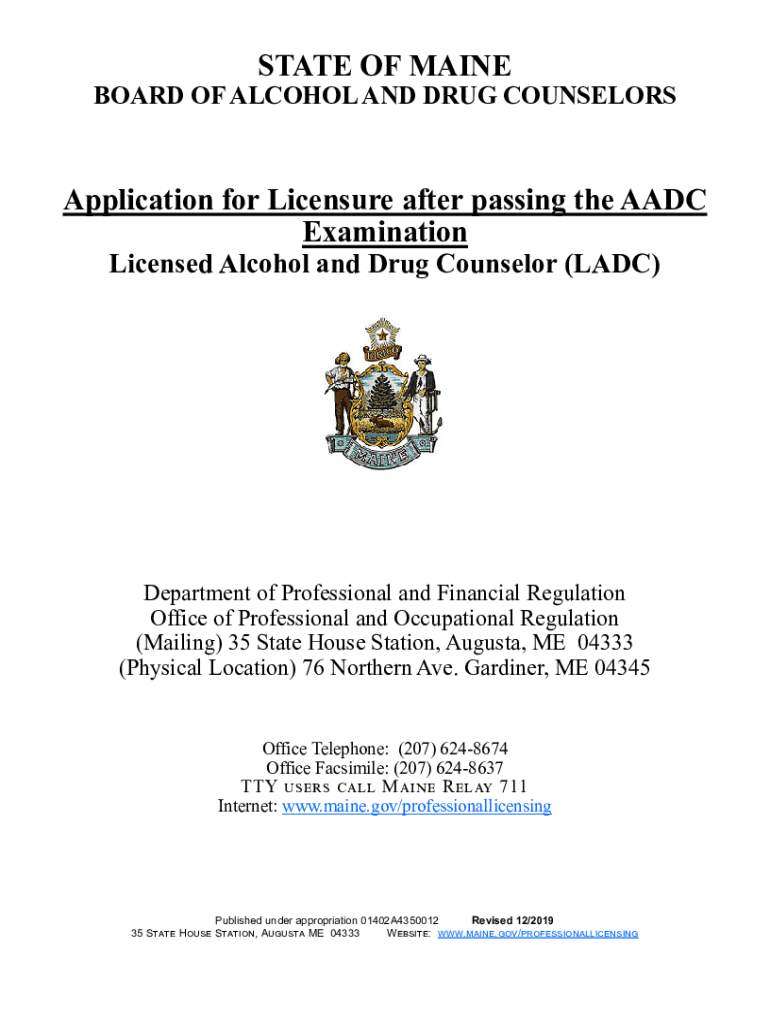 STATE OF INBOARD OF ALCOHOL AND DRUG COUNSELORSApplication for Licensure after passing the ADC Examination Licensed Alcohol and Drug Counselor (LADY)Department of Professional and Financial Regulation