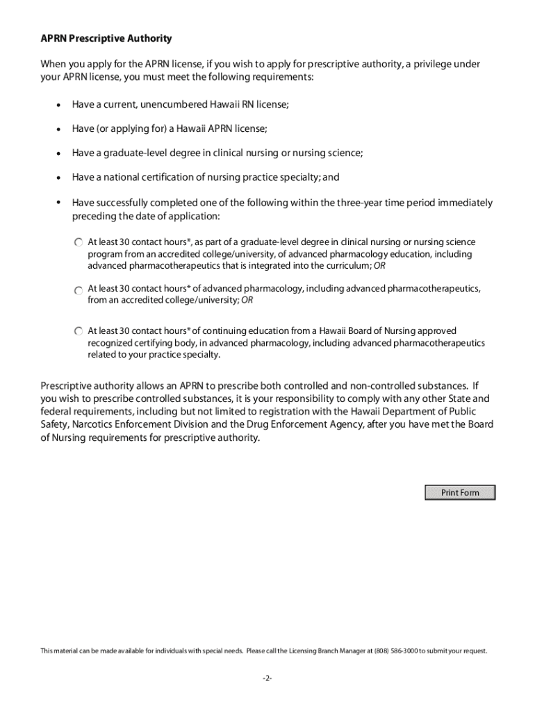 IMPORTANT PLEASE READ CAREFULLY BEFORE SUBMITTING YOUR APPLICATION FOR LPN, RN OR APRN LICENSE In addition to the requirements attached to the application for a Hawaii nurse license by exam or endorsement,