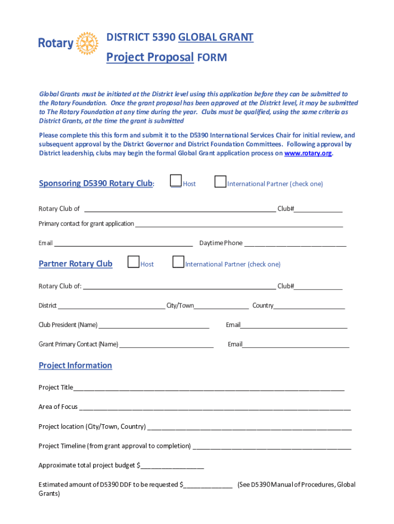 DISTRICT 5390 GLOBAL GRANTProject Proposal FORM Global Grants must be initiated at the District level using this application before they can be submitted to the Rotary Foundation. Once the grant proposal