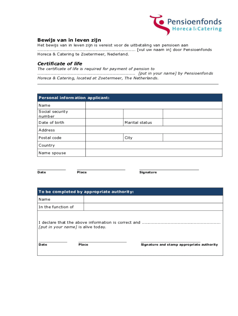 Get the free Bewijs van in leven zijn Certificate of life The ...