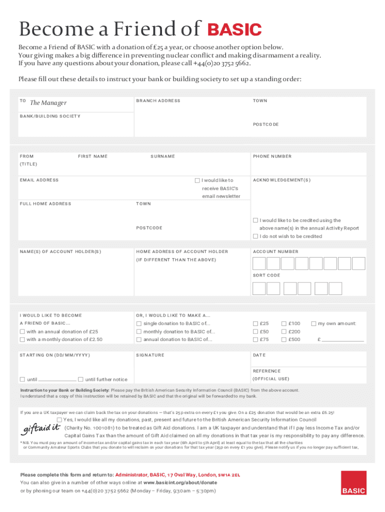 Become a Friend of BASIC Become a Friend of BASIC with a donation of 25 a year, or choose another option below. Your giving makes a big difference in preventing nuclear conflict and making disarmament