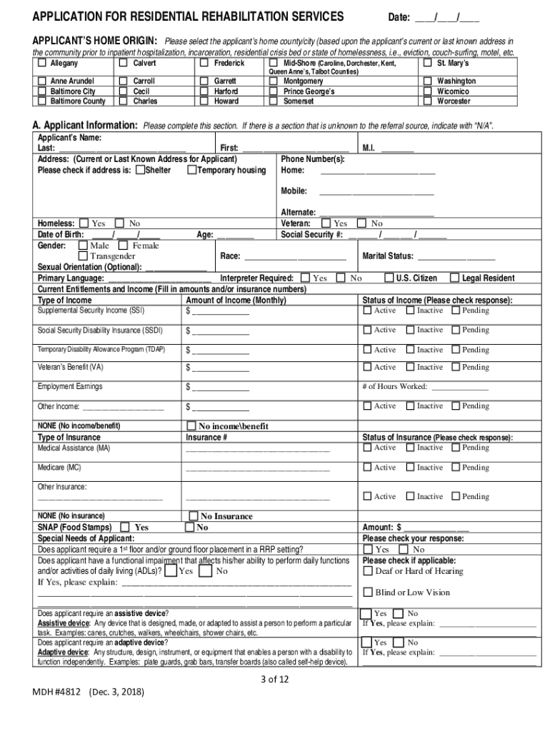 BEHAVIORAL HEALTH ADMINISTRATION RESIDENTIAL REHABILITATION PROGRAM APPLICATION FORM INSTRUCTIONSResidential Rehabilitation Program (RAP) provides housing and supportive services to single individuals.