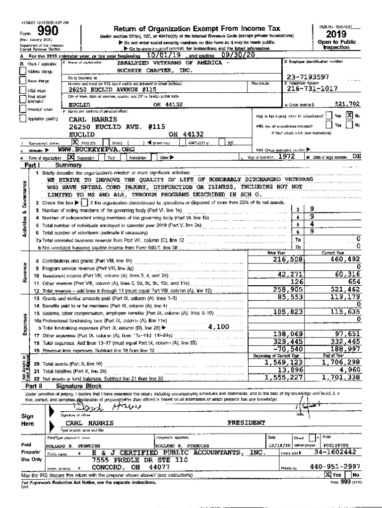Get the free Form 990 (2019) Page - Paralyzed Veterans Of America