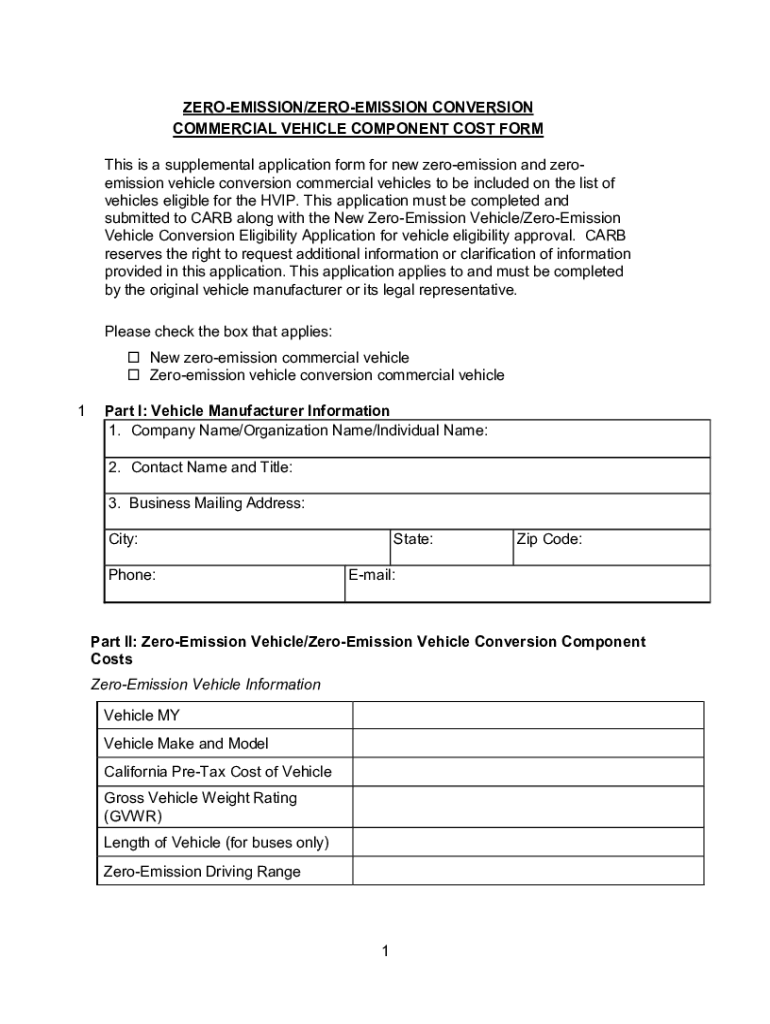 PERMISSION/PERMISSION CONVERSION COMMERCIAL VEHICLE COMPONENT COST FORM This is a supplemental application form for new zero emission and zero emission vehicle conversion commercial vehicles to be